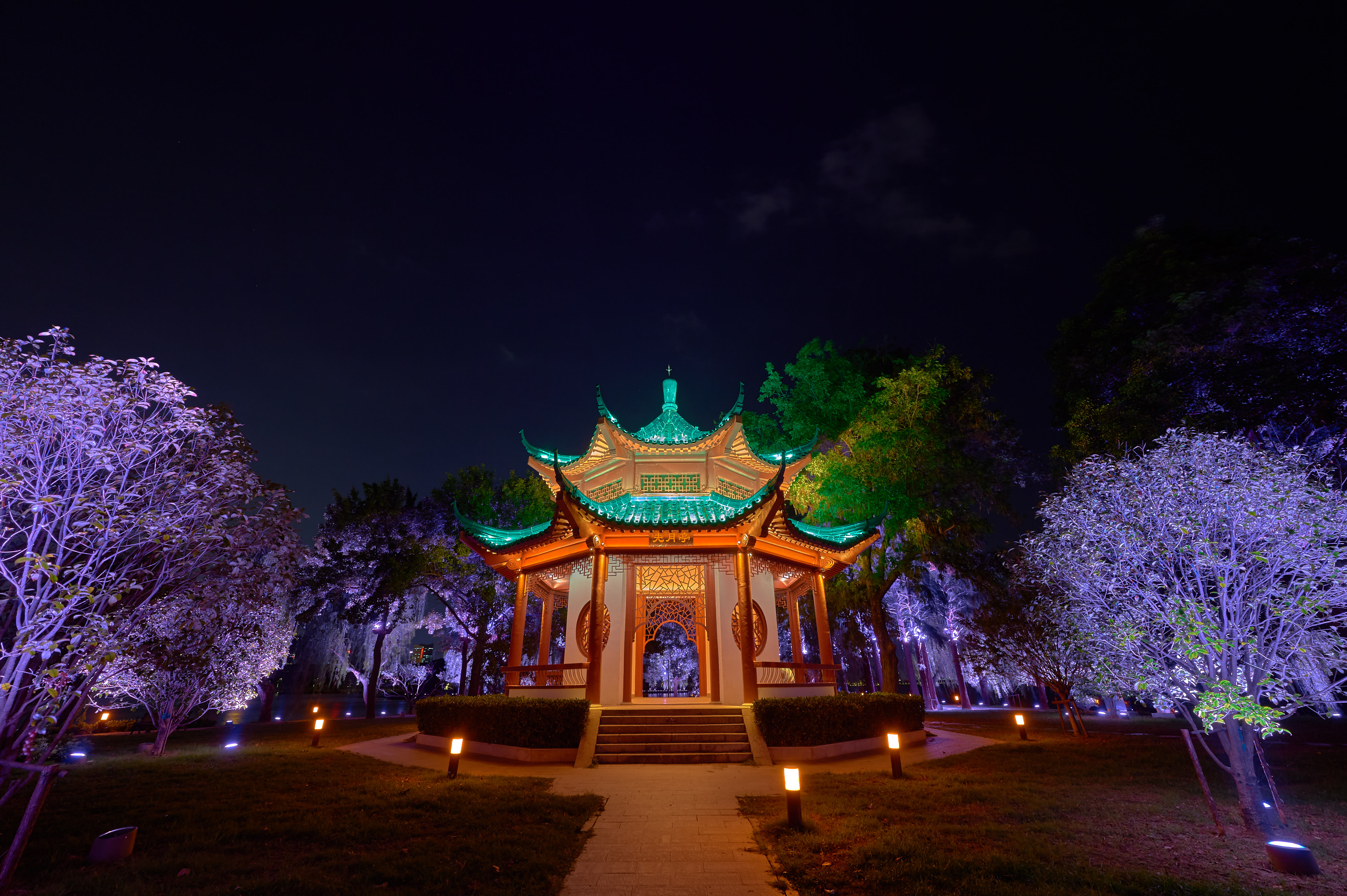 在朗明智誠負責運維的景觀照明項目中,有幾處十分貼合中秋的意境,我們不禁想分享給大家,邀請附近的人們在月圓之夜前來賞景、賞月,度過美好的時光。