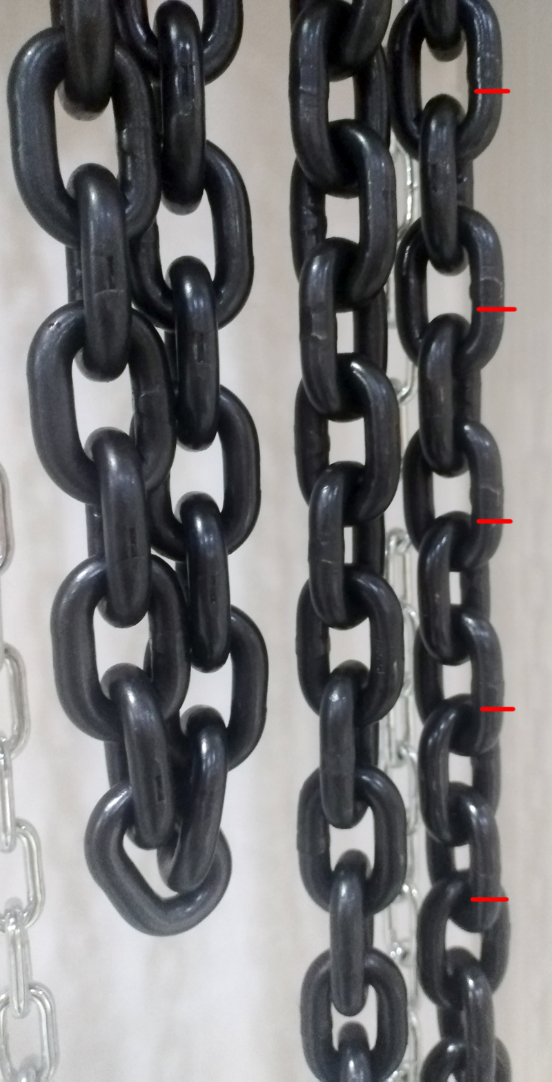 5、檢查鏈環(huán)的方向性。所有的焊接點都應(yīng)在同一個方向(如下圖),只有當(dāng)所有的鏈環(huán)焊接點都在同一條線上時,才能完全正確的操作。